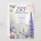 Elegant larkspur and water lilies floral design "55th Birthday Party" design featuring a floral frame of purple larkspur and water lilies on a pastel-toned watercolor background.