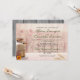 Um convite de casamento com um tema rústico do campo. Uma velha lata de leite enferrujada com uma linda flor amarela ao lado. Trigo e flores postos contra um padrão de madeira tênue.