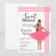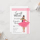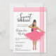 Convite de ilustração de moda Latina Babe rosa doce 16 anos. O desenho apresenta ela em um lindo vestido rosa com detalhes de bordado. Ela também está usando óculos de sol e sapatos rosa. Ilustração de moda fofa para a garota feminina e delicada. Um cartão de convite de ilustração fofo que toda a sua família e amigos vão amar.