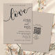Latte Mocha Black Love Script Minimalist Wedding Invitation with QR code. This minimalist design features elegant script and clean typography, making it the perfect choice for the stylish, contemporary couple. Lovely trending latte mocha with contrasting black script balances modern sophistication with organic warmth. The back features a QR code to link to all your wedding details. If you prefer, delete the text and QR code for a plain card back. Use capital letters when inputting your names, as shown in the sample, if you like the design as is. Contact the designer for any customization questions