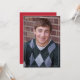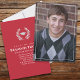 Esta design apresenta uma foto clássica de graduação de formando, uma elegante e moderada minimalista simples, uma folha de riso de louros de louros de lousa, para um segundo grau ou mais velho universitário, uma classe cardeal vermelha moderna de seu ano, um tradicional boné de moto de lousa, um convites de festas de formando de graduação clássico, um simples anúncio de fotos de graduação, com cores da escola, tipografia de texto branco, um cartão de graduação