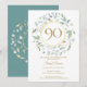 Uma grinalda decorativa de louro circunda uma borda de folha de ouro falsa contendo o texto da idade de 90 anos. Abaixo, os detalhes do seu evento de aniversário estão definidos em texto clássico elegante. O verso apresenta iniciais de monograma definidas dentro de uma grinalda floral e de folha de ouro falsa correspondente. Criado por Thisisnotme©