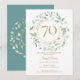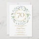 Uma grinalda de louro decorativa circunda uma borda de folha de ouro falso contendo o texto de 70 anos de idade. Abaixo, os detalhes do seu evento de aniversário estão definidos em texto clássico e elegante. O verso apresenta iniciais de monograma definidas dentro de uma grinalda floral e de folha de ouro falso correspondente. Concebido por Thisisnotme©