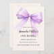 Um fundo bege suave, colorido creme, decorado com uma lavanda grande, violeta, arco roxo. Personalize e adicione um nome e detalhes da parte.
