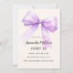 Um fundo bege suave, colorido creme, decorado com uma lavanda grande, violeta, arco roxo. Personalize e adicione um nome e detalhes da parte.