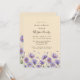 Flores silvestres de cor d'água roxas deliciosas dançam através de um papel macio, estilo francês, criando uma estética sonhadora e romântica. Perfeito para um casamento na primavera, este elegante design captura a essência de jardins florescentes e amor eterno. A sutil textura do papel melhora os detalhes florais pintados manualmente, fazer uma excelente escolha para uma celebração refinada e graciosa.