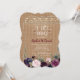 Cartão de design único, rústico, com uma bela tipografia de CHURRASCO I DO (letra O substituída por um anel), corações para iniciais, luzes de cordas, lavanda de marinho aquática azul buquê floral, em um fundo burlap. Use a ferramenta Personalizar para adicionar suas informações. Veja, também, minha coleção I DO CHURRASCO Chalkboard/Barn e Gingham.