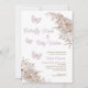 Lavanda Boho Floral Borboleta Beija Convite para Chá de fraldas Procurando um moderno beijo neutro de borboletas e um convite para o chá de fraldas? Este design apresenta um arranjo floral estilo boêmio com grama pampas em tons neutros e três borboletas lavandas e douradas. Este convite de chá de fraldas temático da borboleta é ideal para alguém que procura um convite de chá de fraldas de cor lavanda inspirado pela boêmia.