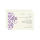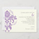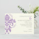 Convite de casamento moderno de motif damask. Mostra uma lavanda, um motif roxo e a sua redação na cinza.