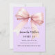 Lavanda macia, fundo cor-de-roxo, decorado com um arco cor-de-rosa grande. Personalize e adicione um nome e detalhes da parte.