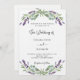 Um fundo branco decorado com flores lavandas e verde de eucalipto. Personalize e seus nomes e detalhes. Voltar: Personalize e adicione sua foto ao arco. Adicionar as iniciais do monograma (ou eliminar)