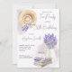 Lavanda de chá, modelo de convite de aniversário de festas de chá. Lavandas, livros, xícara de chá e um chapéu, convite romântico.