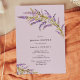 Um chá de panela clássico elegante de lavanda flutuante com aquarelas, com ramos e flores de caules botânicos de lavanda roxa, folhagem verde e castanha e caligrafia elegante na lavanda clara.