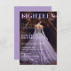 Procurando algo elegante para anunciar sua celebração? Este convite de aniversário de 18 anos, tema de lavanda, combina um sofisticado layout de revista com um cenário de grande escadaria para um olhar eterno e gracioso. A foto de fundo é apenas uma amostra e pode ser substituída por sua própria imagem para corresponder ao seu vestido, paleta de cores ou tema de festa. Concebido para desbutantes ou qualquer pessoa que comemore o seu marco num salão de baile ou num cenário formal, este convite cria uma bela primeira impressão para uma noite inesquecível. Perfeito para estrear celebrações, aniversários formais ou eventos elegantes.