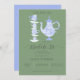 Um chá de panela "Time for Tea with the Bride to Be", elegante e moderno, com uma elegante e clássica silhueta de pote de chá, com um cadarço (este é um efeito digital), rodeado de xícaras de chá. Chic, moderno e eterno, este convite é adorável para uma festa de chá de jardim ou para um chá de panela interior nos meses mais frios.