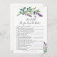 Você conhece bem o jogo do Chá de panela de noiva. Este design apresenta uma ilustração aquarela de flores lavandas roxas e folhagem de eucalipto. Na parte superior da placa - o efeito esverdeado confetti.