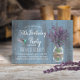 Lavanda Rústica, Convites de aniversário de salto azul Dusty e de salão azul de Hummingbird.