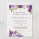 Lavanda e cor d'água púrpura floral sobre madeira de celeiro lavada branca, convite de casamento rústico com texto do estilo tipografia que é totalmente editável tem um estilo romântico e encantador de feto.
