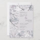 Esses convites para casamento de 5" x 7" apresentam um design de folha abstrato em tons de cinzas poeirentos e lavanda com os acionistas, "Nós convidamos você a celebrar o casamento de, " a noiva e o noivo primeiro e sobrenomes, data, hora, nome e endereço do local do casamento, "recepção a seguir."