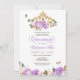 Convite de quinceanera em lavanda de lilac roxo com borboletas e uma bela tiara floral. Visite o compro para obter mais variações, incluindo opções com bonecas em vestidos em muitas combinações de cores e tom de pele