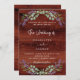 Madeira marrom russa como fundo decorado com flores de lavanda e verde de eucalipto. Personalize e seus nomes e detalhes.