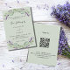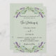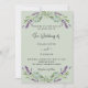 Um fundo verde sábio decorado com flores lavandas e verde de eucalipto. Personalize e seus nomes e detalhes. Voltar: adicione seu URL da Web ao seu site de casamento para RSVP e mais detalhes.