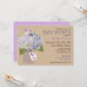 Lavanda hydrangeas no jarro de mason com etiqueta de "Girl" sobre o cartão de convite para chás de fraldas rústicos com padrão de aparência linear.