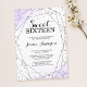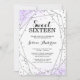 Lavanda moderna e convite de aniversário doce prateado 16. Design apresenta uma borda falsa, tipografia de tendência e formas geométricas com cantos de aquarela. Os designs são ilustrações/gráficos impressos planos - NÃO É O GLITTER OU FOIL REAL.