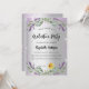 Um convite moderno e na moda. Um fundo de aparência falsa de prata com faíscas violetas, flores de lavanda, flores e verde de eucalipto. Personalize e adicione o nome e os detalhes da festa.