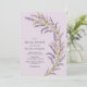 Cor de água do chá de panela clássico elegante de lavanda floral clássico, com ramos e flores de caules botânicos de lavanda roxa, folhagem verde e castanha e caligrafia elegante na lavanda clara.