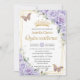 Convite Lavanda Roxa Borboleta Floral Dourada Quinceanera