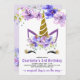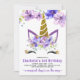 Convite Lavanda Roxa Floral Unicorn Birthday Barty