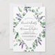 Esta lavanda rústica e o eucalipto brunch e o convite à espuma são perfeitos para um simples e elegante chá de casamento ao ar livre. O design floral apresenta folhas de cor aquosa de eucalipto e verde com espinhos de flores silvestres roxas.