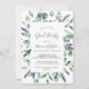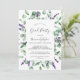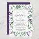 Esta lavanda rústica e um convite para festas de formatura de eucalipto é perfeito para uma simples e elegante festa de formando ao ar livre. O design floral apresenta folhas de cor aquosa de eucalipto e verde com espinhos de flores silvestres roxas.