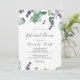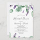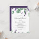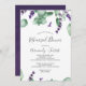 Esta lavanda rústica e o convite para janto de ensaio de eucalipto é perfeito para um ensaio de casamento simples e elegante ao ar livre. O design floral apresenta folhas de cor aquosa de eucalipto e verde com espinhos de flores silvestres roxas.