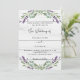 Madeira branca russa como fundo decorado com flores de lavanda e verde de eucalipto. Personalize e seus nomes e detalhes. Voltar: adicione o URL do seu site de casamento ao código QR para obter mais detalhes e/ou RSVP