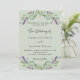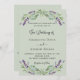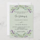 Um fundo verde sábio decorado com flores lavandas e verde de eucalipto. Personalize e seus nomes e detalhes. Voltar: adicione seu URL da Web ao seu site de casamento para RSVP e mais detalhes.