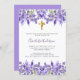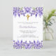 Um fundo branco decorado com flores lavandas de cor aquosa e uma cruz ouro. Personalize e um nome e detalhes. Fundo: lavanda, fundo colorido violeta.