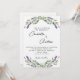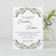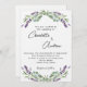 Um fundo branco decorado com flores lavandas e verde de eucalipto. Personalize e seus nomes e detalhes.