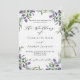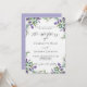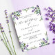 Um fundo branco decorado com flores lavandas e verde de eucalipto. Personalize e seus nomes e detalhes. Fundo: lavanda, fundo colorido violeta.