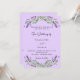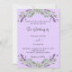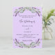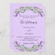Um fundo violeta decorado com flores de lavanda e verde de eucalipto. Personalize e seus nomes e detalhes. Voltar: adicione seu URL da Web ao seu site de casamento para RSVP e mais detalhes.