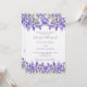 Um fundo branco decorado com flores lavandas. Personalize e seus nomes e detalhes. Voltar: adicione o URL do seu site de casamento ao código QR para obter detalhes e/ou RSVP.