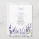 Um bonito campo de lavandas floresce na parte inferior deste convite de casamento. Personalize-o com os nomes da noiva e do noivo num estilo moderno de escrita de caligrafia. Personalize a data, hora, local, informações de r.s.v.p e muito mais. Este convite é perfeito para o seu primavera ou casamento de verão.