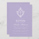 Convite Lavender Baptism Cross Floral Crest Elegant Purple