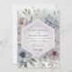 A soft watercolor design features muted lavender and dusty blue floral elements mingled with delicate foliage. This enchanting artwork evokes a feeling of gentle romance and natural beauty. The ethereal color palette creates an atmosphere of serene elegance.