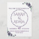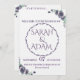 This romantic template features classic script, a timeless filigree circle border, and rich purple floral accents that evoke an upscale, vintage feel. Customize both the main invitation and the full Details Card (back design) with your names, venue, ceremony information, dress code, and RSVP deadline.