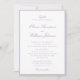 A soft lavender frame introduces a calm, romantic tone while keeping the layout elegant and balanced. The subtle border enhances the structure without overpowering the delicate typography.
