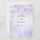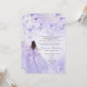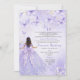 Celebrate her special day with this elegant lavender quinceañera invitation, featuring soft watercolor butterflies, a dreamy purple background, and a beautiful quince-style gown illustration with a statement bow.