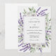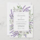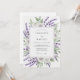 This design features a soft palette of lavender purple and muted sage green. Delicately painted sprigs of lavender surround elegant white roses and lush foliage, creating a serene and romantic atmosphere. The watercolor aesthetic brings a touch of nature-inspired beauty to your special day. Perfect for a breezy seasonal event.