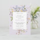 This elegant lavender bridal shower invitation features delicate wildflower blooms in soft pastel tones, creating a romantic botanical design with a refined minimalist layout. The muted purple background paired with airy meadow florals and subtle foliage accents gives this invite a whimsical yet chic aesthetic.